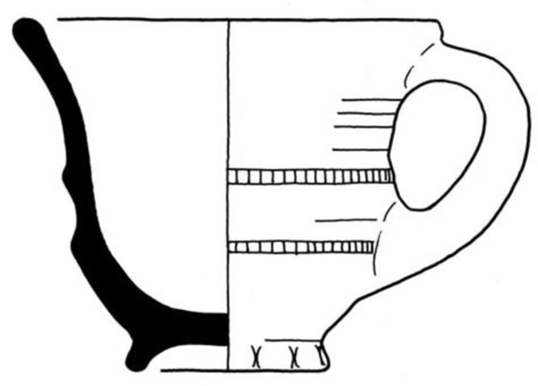 | 4b vorm | hoge beker met uitstaande afgeronde rand, scherpe knik wand-bodem, standring |