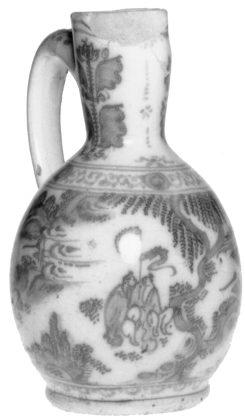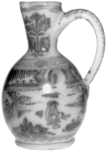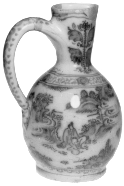 | 4b | eivormige kan met nauwe hoge hals, schenklip en verticaal oor, platte bodem |