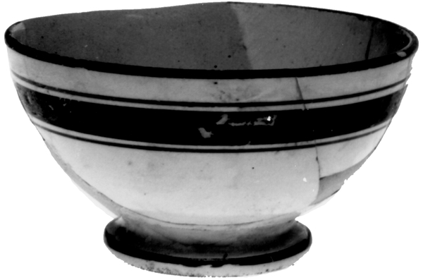 | 5c decoratie | Banden in bruin en blauw op voet en rand. |