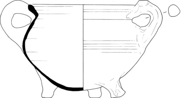 | 4b | bolle grape met buikknik en licht uitstaande hals, afgeplatte rand met groef bovenop |