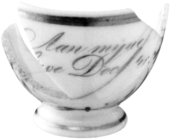 | 5c | spreuk: 'Aan mijne lieve Dochter' tussen goudfiletten bovenglazuur goud |