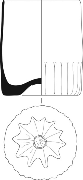 | 4b | dikwandige cilindrische beker met verticale ribben op de onderste helft, standvlak of opgebold met of zonder pontilmerk |