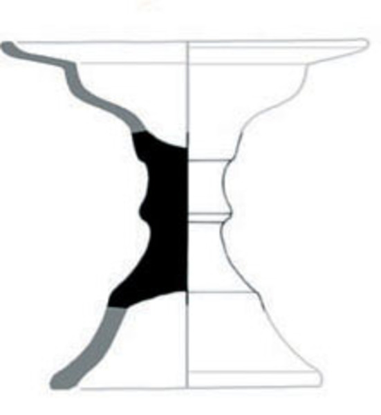 | 4b | zoutvat met s-vormige overgang spiegel-vlag en afgeplatte rand met opstaande lip, op stam met hoge conische standvoet |
