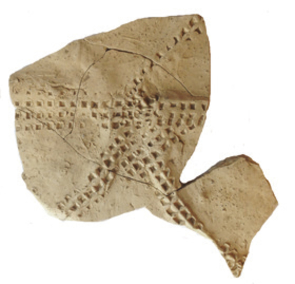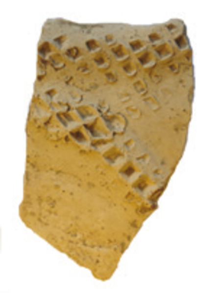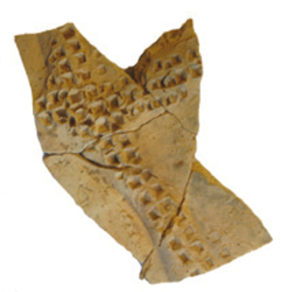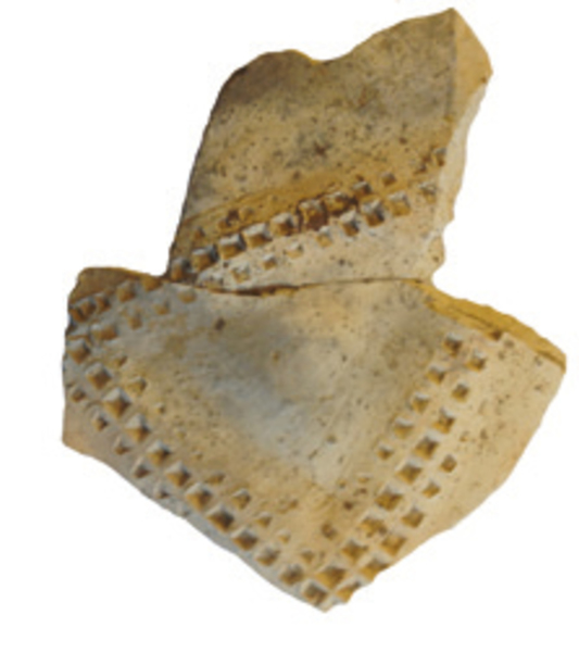 | 5c | opgelegde met blokvormige radstempel versierde reliëfbanden in twee of drie zones, lintoren ook met blokvormig radstempel |