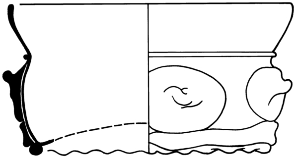 | 4b | lage cilindrische licht buikige koolstronk met toegebogen lip, horizontale rij noppen, puntnoppen of opgerichte puntnoppen, ook met patroonvorm, opgestoken bodem met pontilmerk, voetring |