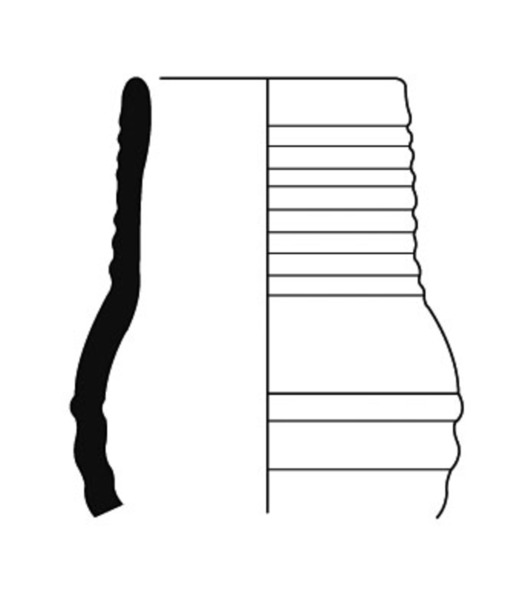 | 4b | biconische kan met buikknik met ribbel en hoge hals met rechte rand, op standring |