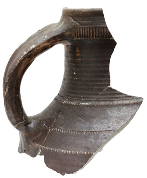 | 4b | bolle kan met cilindrische hals en kraagrand, ribbel op halsaanzet, standring |