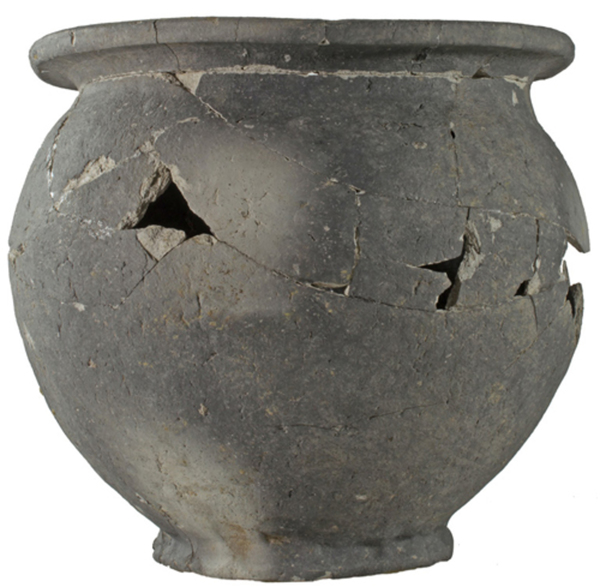 | 4b | handgevormde bolle pot met driehoekig verdikte rand, standring |