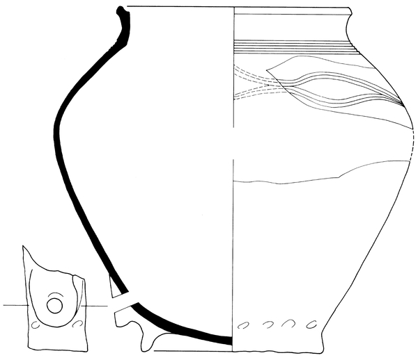 | 4b | bolle voorraadpot met hoge schouder, zeer korte verticale hals en haaks geknikte rechthoekige rand, standring |