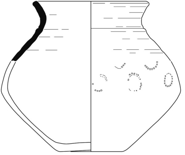 | 4b vorm | biconische pot met uitstaande afgeronde rand en ribbel op halsaanzet, standvlak |
