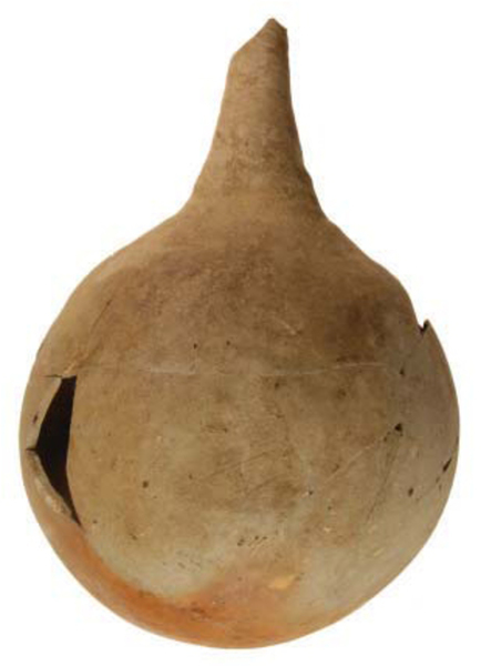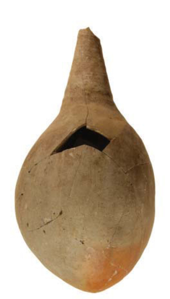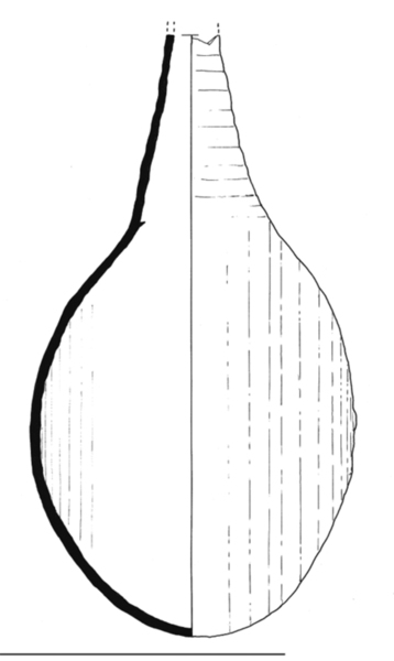 | 4b | pilvormige tot bolle fles met hoge conische hals |