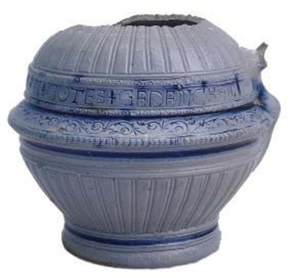 | 5c decoratie | reliëf, tekstband: essen en drencken salman Gotes gedencken blauw |