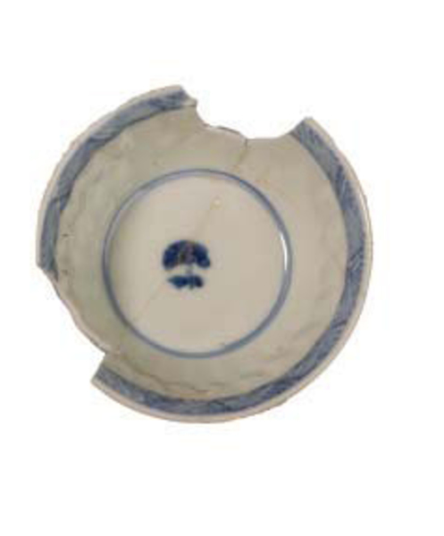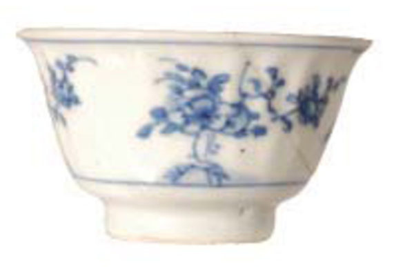 | 5c decoratie | bloemen inwendig/uitwendig onderglazuur blauw |
