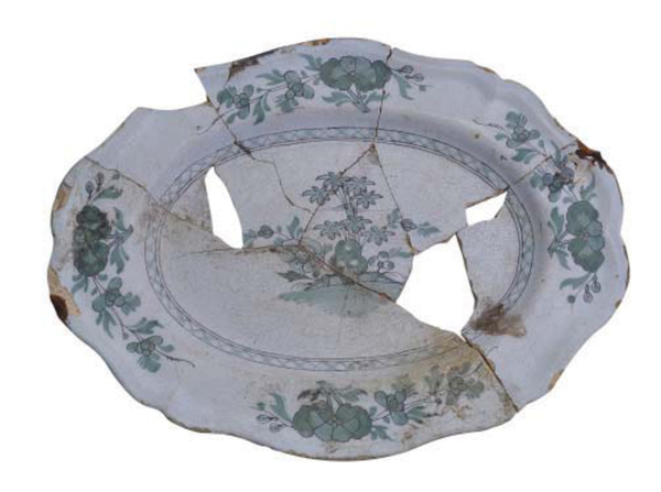 | 4b | lage, ovale schaal , naar buiten geknikte brede vlag met horizontaal gegolfde rand, standvlak |