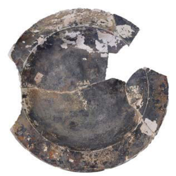 | 5d diversen | dunne laag loodglazuur, vrijwel geheel weg verweerd, zwart geworden in de bodem blindmerk: C.....sy |