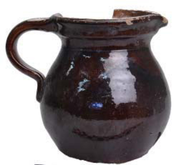 | 5b afwerking (kleur/glazuur) | loodglazuur, uitwendig met mangaanoxide |