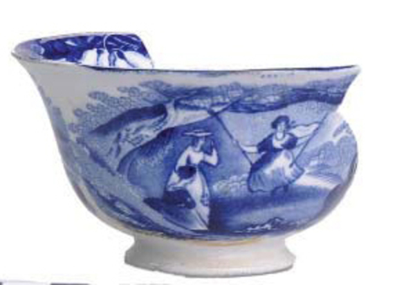 | 5c decoratie | blauw opdruk: schommelende vrouw in tuin blauw |