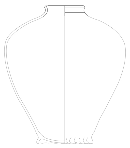 | 4b vorm | handgevormde eivormige voorraadpot met driehoekig verdikte rand, bolle bodem (a) of standring (b) |