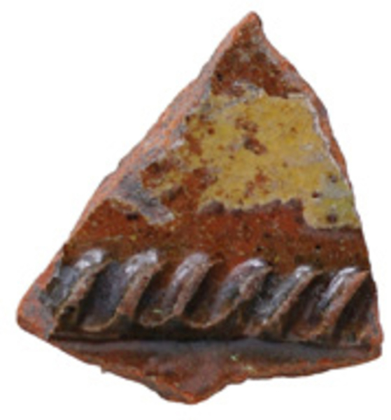 | 5a baksel | roodbakkend aardewerk , hoogversierd |
