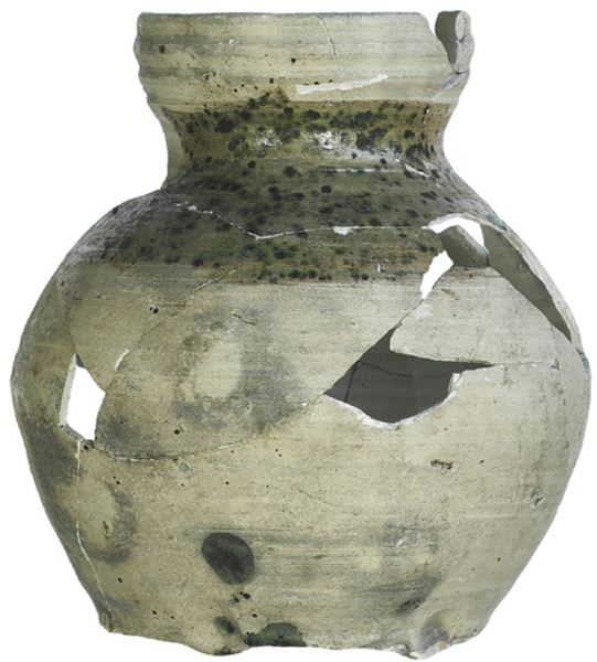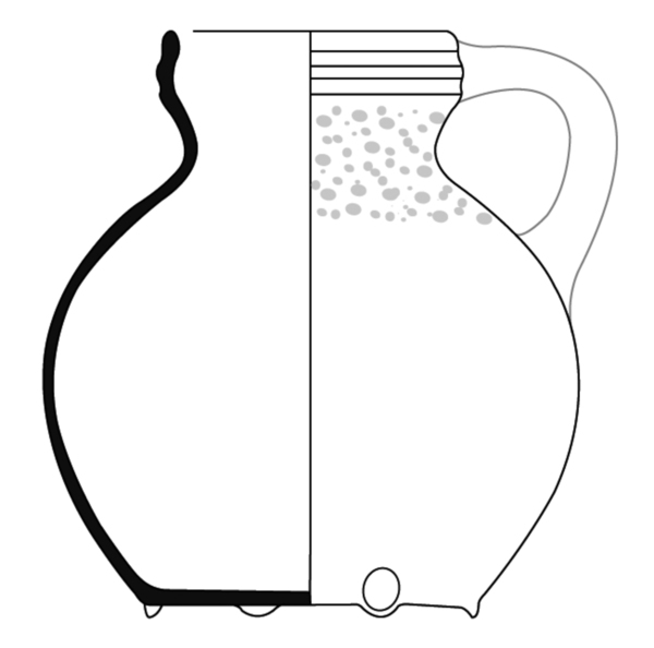 | 4b | bolle kan, hoge afgerond-conische hals met aan de binnenkant afgeschuinde rand, lobvoeten |