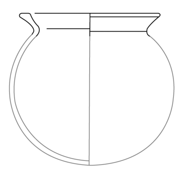 | 4b vorm | kogelpot met korte uitstaande hals en aan bovenzijde afgeplatte rand met dekselgeul |