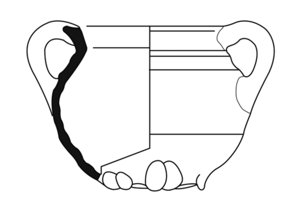| 4b | bolle grape met uitstaande hals, rand aan bovenzijde afgeplat tot richel, lobvoeten |