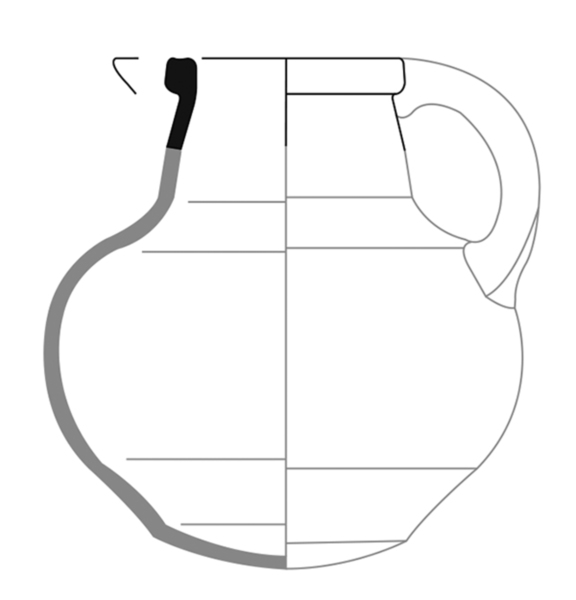 | 4b | bolle kan met hoge schouder en cilindrische hals met manchetrand, lensbodem (komt voor met en zonder lobvoeten), soms met tuit |