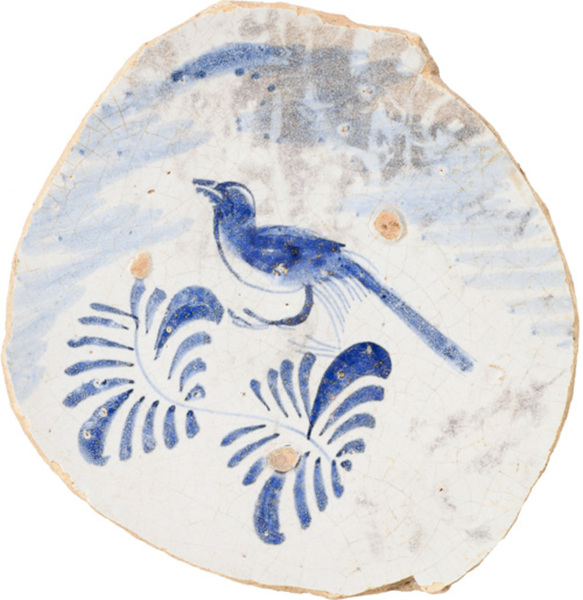 | 5c decoratie | blauwe beschildering: vogel op tak inwendig: blauw |