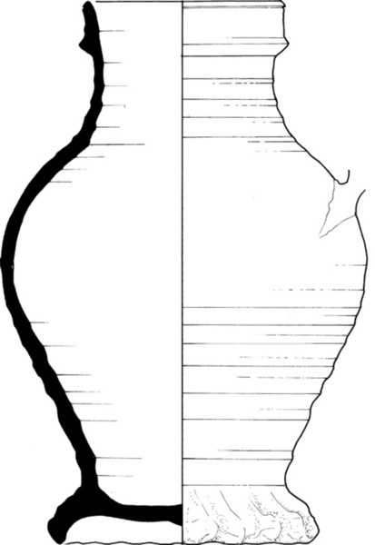| 4b | bolle kan met schouder overgaand in hals, kraagrand, standring |