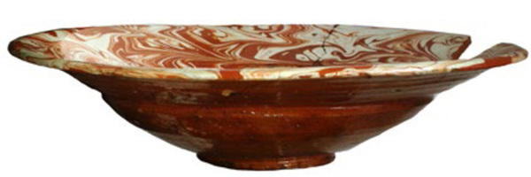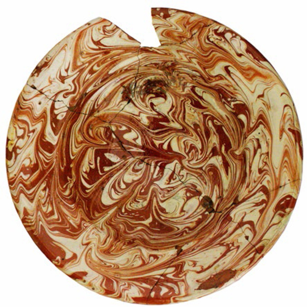 | 5c decoratie | inwendig gemarmerde witte sliblaag met rood en crèmewit (spiegel en vlag gemarmerd) |