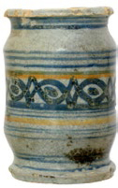 | 4b vorm | hoge, smalle zalfpot met ingesnoerde bodem en hals met uitgebogen rand, standvlak |