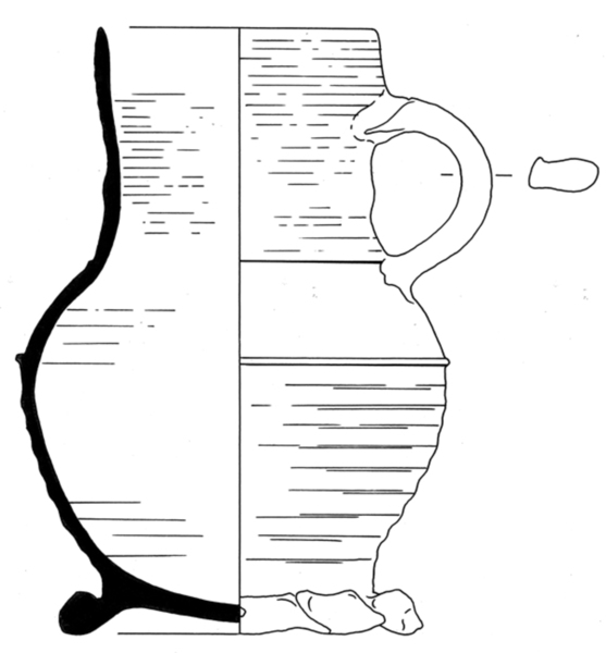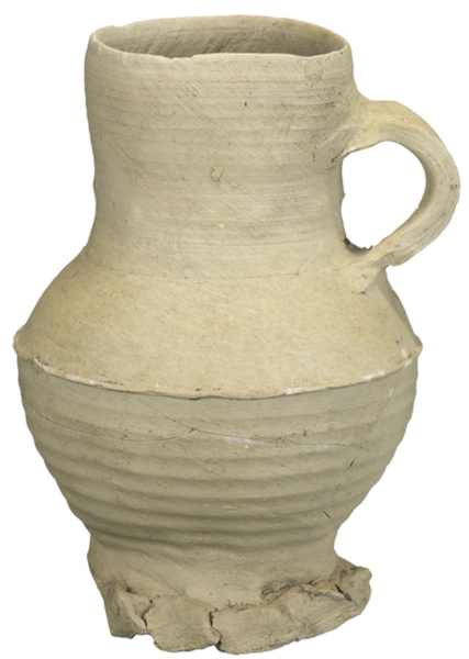 | 4b | biconische kan met buikknik met ribbel en hoge hals met rechte rand, op standring |