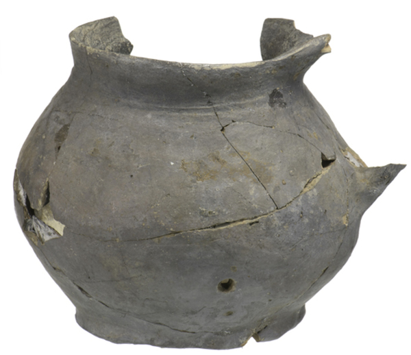 | 4b vorm | bolle beker met korte uitstaande rand en lintoor, standring |