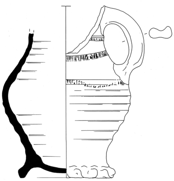 | 4b | bolle drinkkan met hoge schouder en cilindrische hals, ribben op halsaanzet, standring |