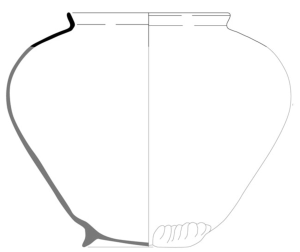 | 4b | bolle voorraadpot met hoge schouder zonder hals, uitgebogen rand, lobvoeten |