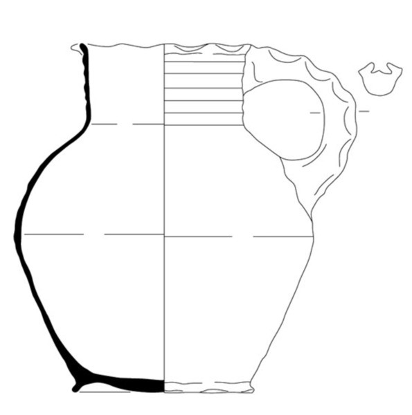 | 4b | bolle kan met hoge schouder die vloeiend overgaat in vrijwel cilindrische hals met gegolfde rand, standring |