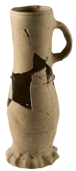 | 4b | lage slanke bekervormige kan met kraag op halsaanzet en rechte rand, op standring |