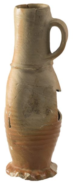 | 4b | lage slanke bekervormige kan met kraag op halsaanzet en rechte rand, op standring |