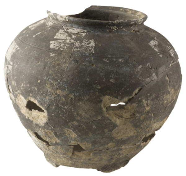 | 4b | bolle pot met hoge schouder en afgeronde kraagrand, lobvoeten |