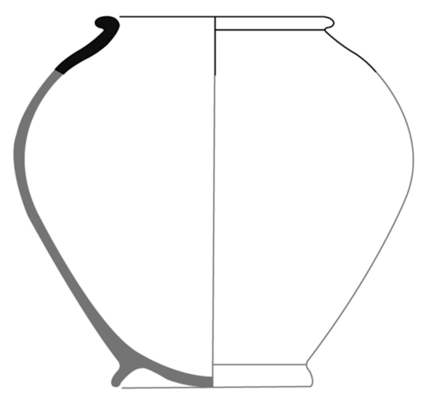 | 4b vorm | bolle pot met hoge schouder en uitgebogen rand, standring |