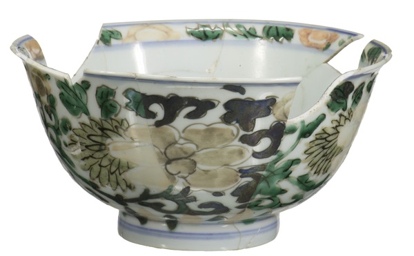 | 5c decoratie | polychroom beschilderd: Famille vert (blauw, groen, rood, goud): floraal polychroom |