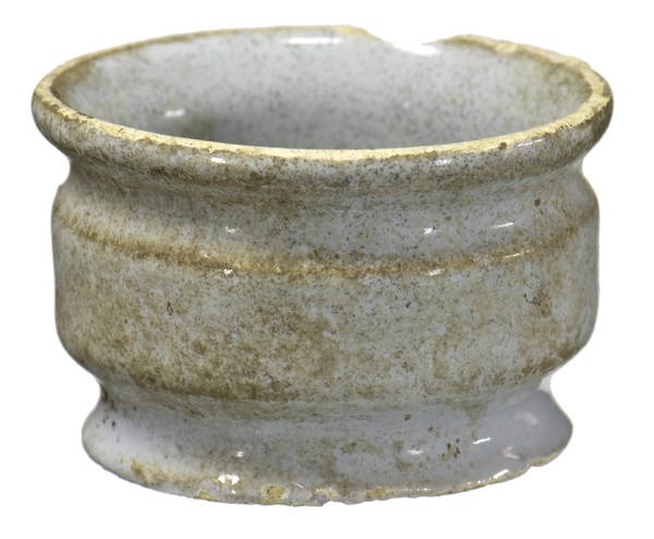 | 4b vorm | brede zalfpot met (vrijwel) cilindrische buik, ingesnoerde bodem en hals met uitgebogen rand, standvlak |