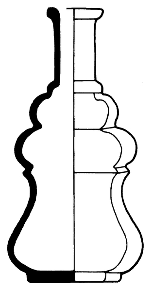 | 4b vorm | zeszijdig geprofileerde parfumfles met cilindrische hals, standvlak, contactvorm met naden |