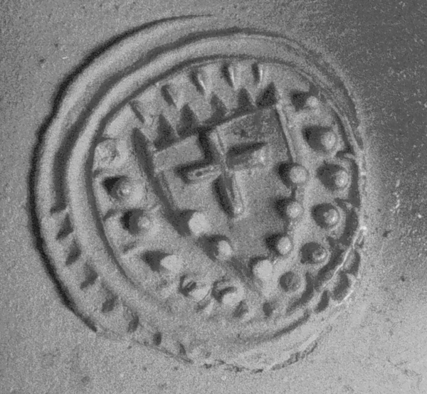| 5c decoratie | 3 medaillons w.o. een met met kruis in schild, oranje blos |