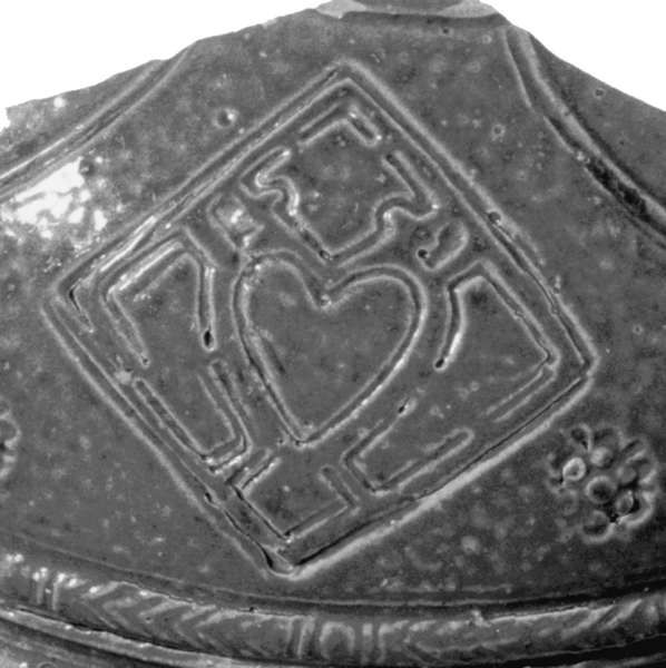 | 5c decoratie | op schouder bladvormige panelen met hart in vierkant stempel, kabelwerk op buik |
