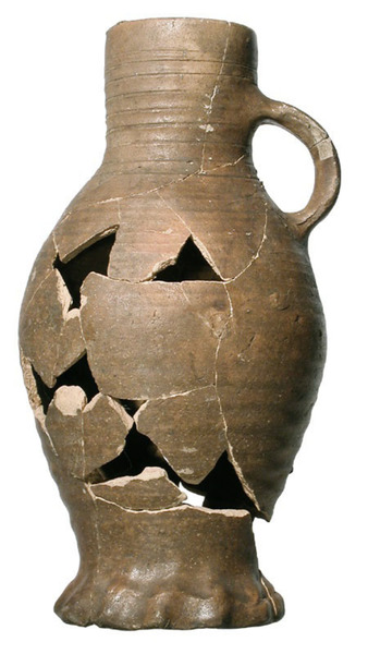 | 4b | slanke kan met hoge licht uitlopende hals en spitse rand, standring |
