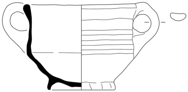| 4b vorm | diepe kop met scherpe knik bodem-wand en iets uitgebogen rand, standring |