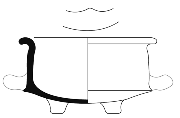 | 4b | steilwandig komfoor met scherpe buikknik bodem/wand en uitgebogen rand, nokken aan binnenzijde van de rand. luchtgaten in wand, poten |