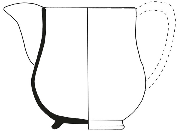 | 4b | peervormige kan met rechte rand en grote schenklip, standring |