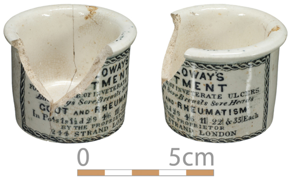 | 4b | lage cilindrische zalfpot met geknikte of uitgebogen rand, standring |